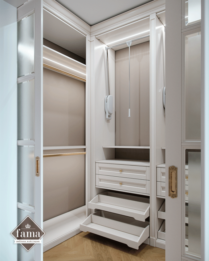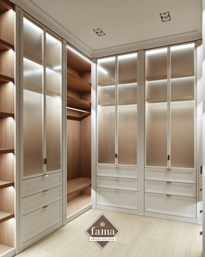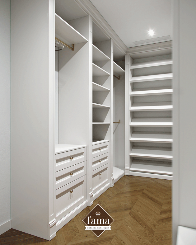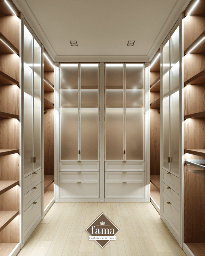 Традиційне рішення для гардеробних кімнат, яке виконується завдяки таким матеріалам: